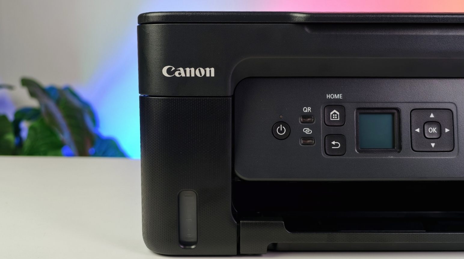The G3770 has a fairly standard, no-frills design. It’s a black, plastic body that feels sturdy enough for regular use. The overall footprint is compact, so it won’t take up much space on your desk. The control panel is minimal, with a small 1.35-inch monochrome LCD screen.