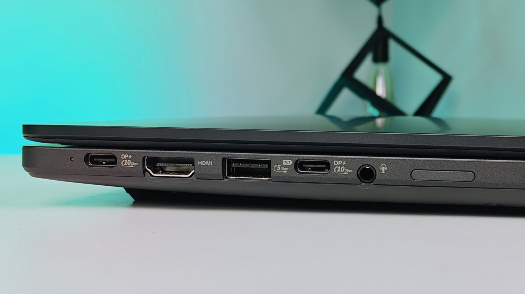 The laptop has a good number of ports for a business laptop. The ports are placed at the back of the device, which leaves more space for you to use a mouse. The laptop has two Thunderbolt 4 USB-C ports, two USB 3.2 Gen1 Type-A ports, an HDMI 2.1 port, and a micro SD card slot. It also has an RJ45 Gigabit Ethernet port and a combo audio jack. The laptop also has optional support for 5G with a Nano SIM card slot.