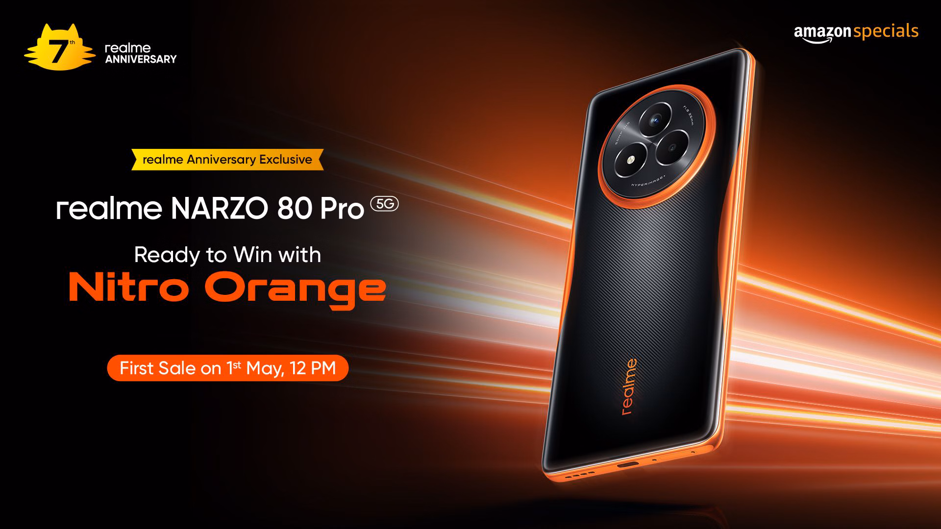 Adding to the excitement, realme has also launched a striking new Nitro Orange color variant for the realme Narzo 80 Pro 5G. This vibrant new option will be available for purchase on realme.com and Amazon starting May 1st.