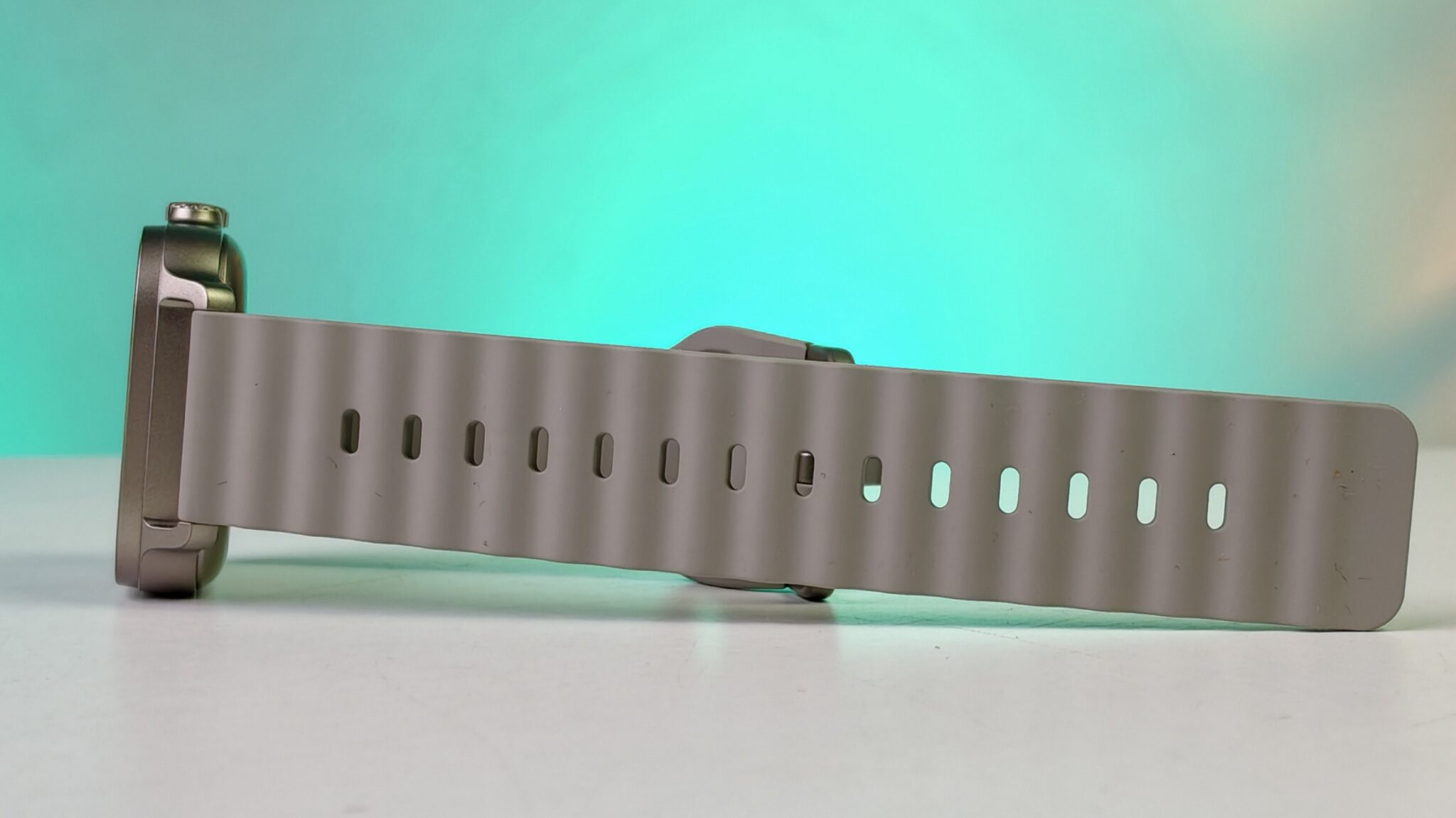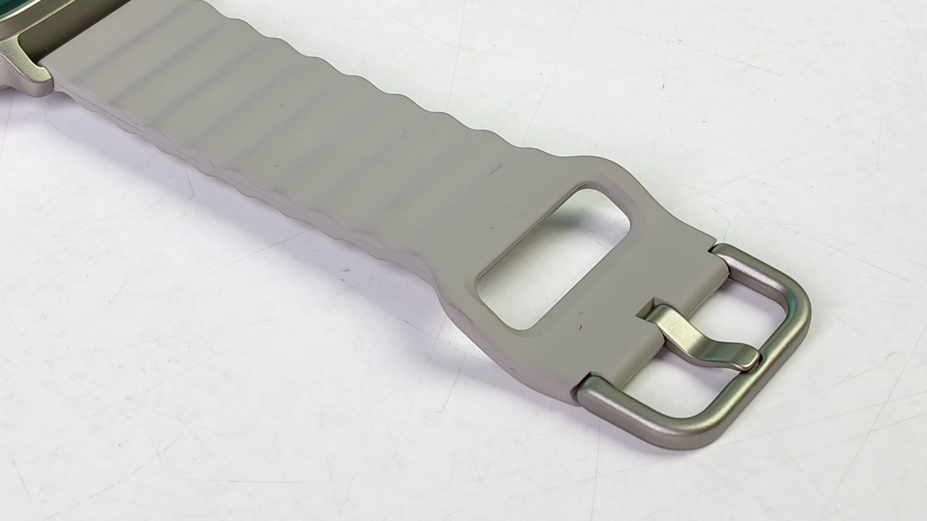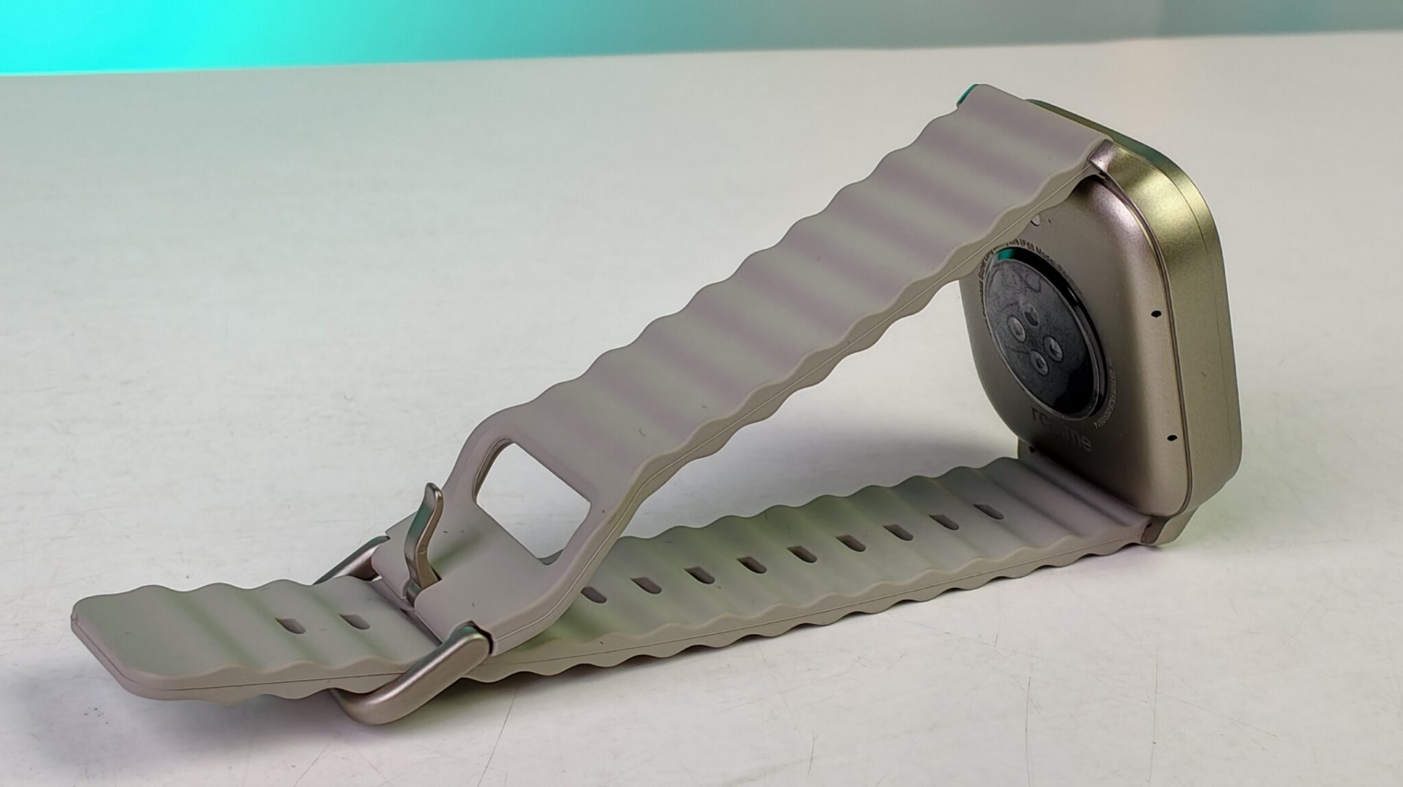 The watch features a “3D-Wave” strap design. I found the silicone material soft and skin-friendly. I wore it continuously for 48 hours, including during a sweaty gym session and while sleeping, and I did not experience any skin irritation or itchiness. The strap has a standard buckle mechanism which feels secure.