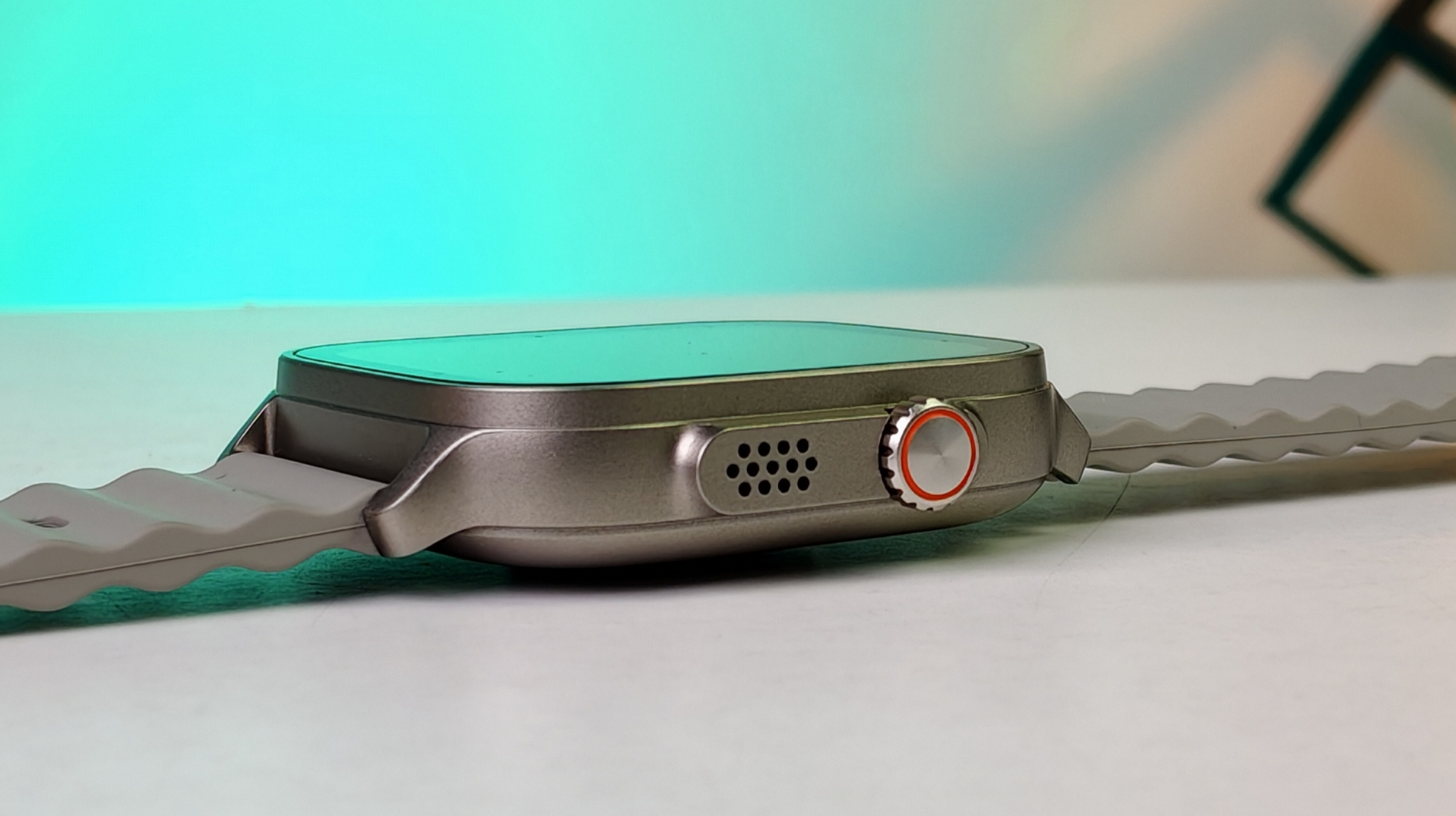On the right side, there is a functional crown made of aluminum alloy. It offers decent tactile feedback when pressed. However, navigating the menu entirely with the crown is not possible; you mostly use it to wake the screen or go back, relying on touch for scrolling.